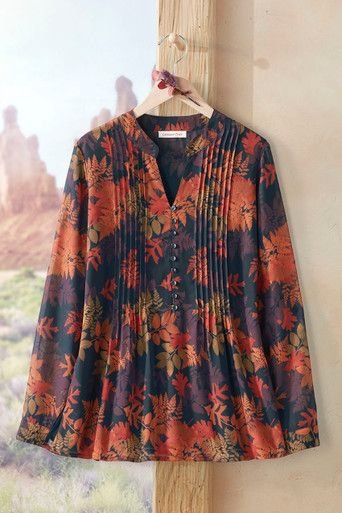 A beautifully designed blouse inspired by delicate falling foliage patterns.
