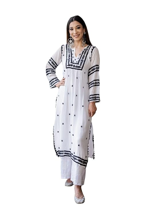 Women’s Long Kurta – Black|Chikankari | Chikankari Kurta | Chikankari Short Kurti | Lucknowi Chikankari Kurti